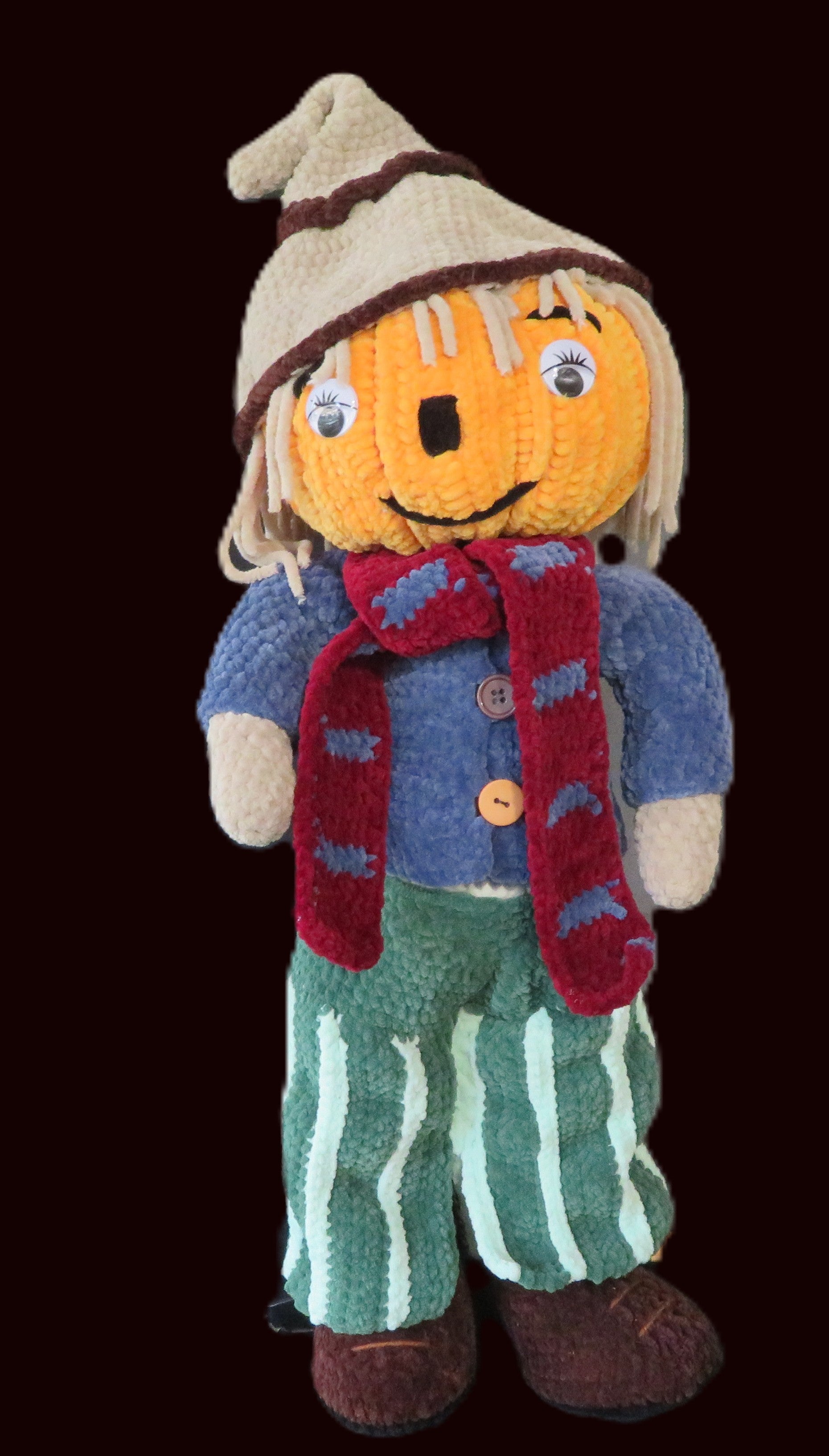 Adorable petit épouvantail fait main au crochet, parfait pour apporter une touche champêtre et joyeuse à votre intérieur.
